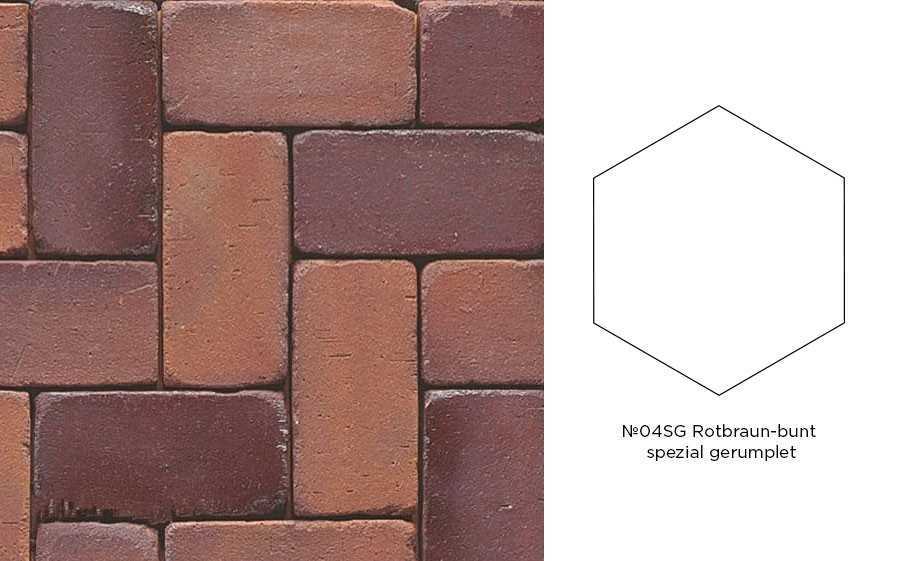 Клинкерная брусчатка Muhr №04SG Rotbraun-bunt Spezial gerumpelt, гексагон 200x52 мм