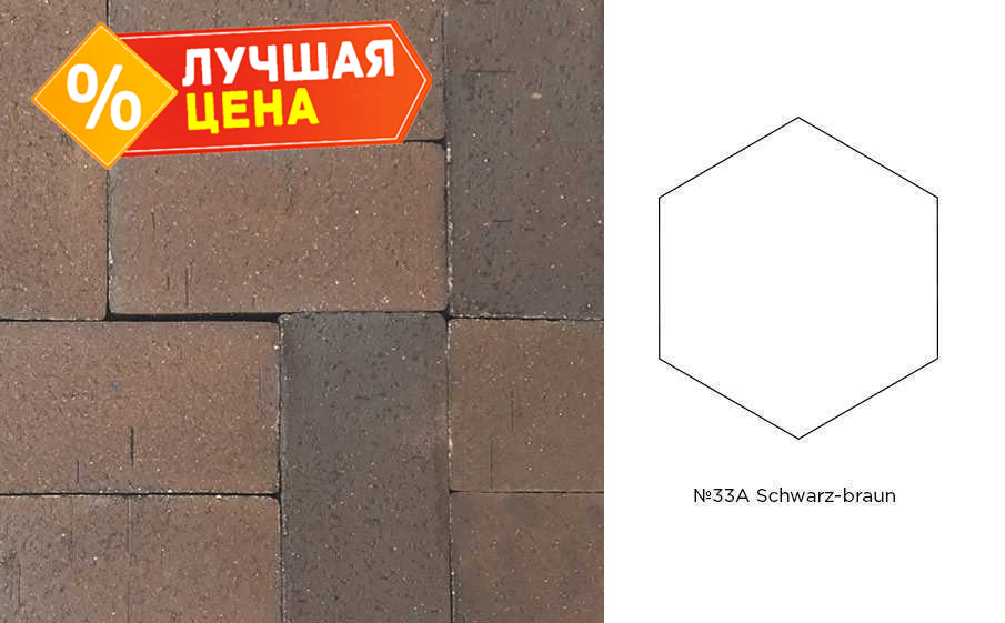 Клинкерная брусчатка Muhr №33A Schwarz-braun, гексагон 200x52 мм